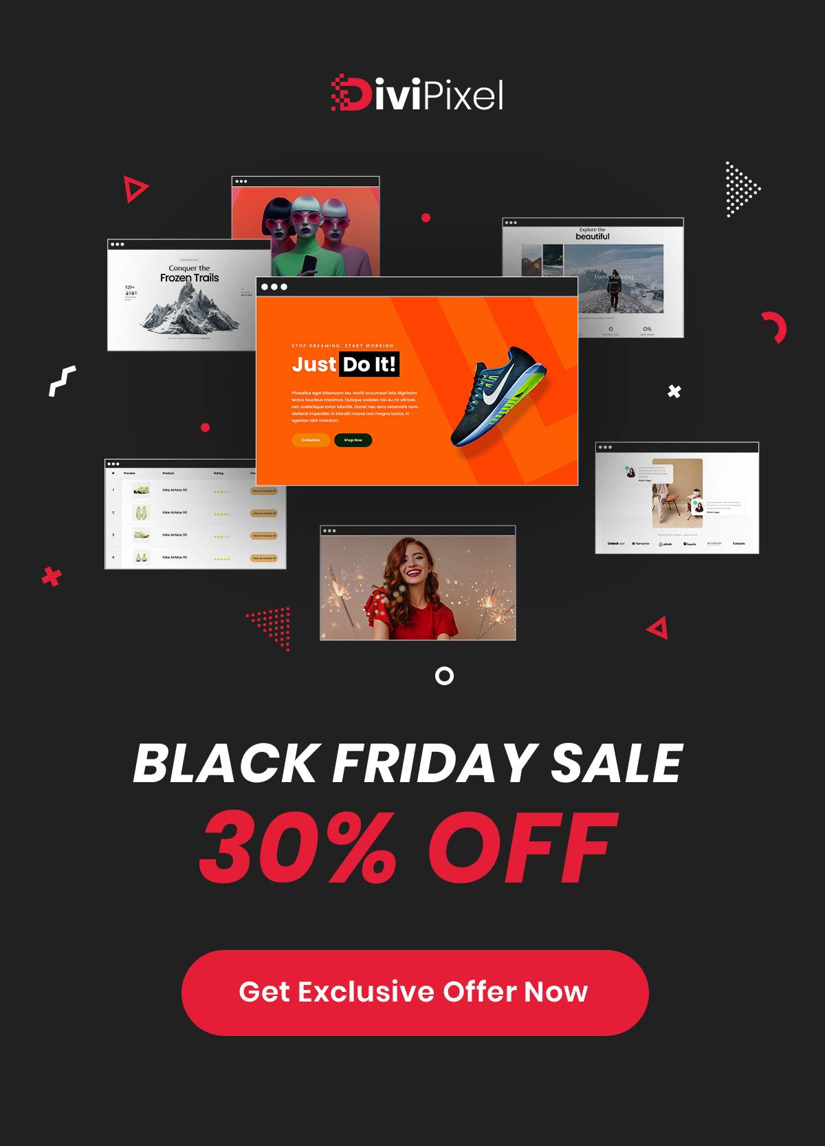DIVI PIXEL BLACK FRIDAY 2024 SALE STARTED GET FREE DIVI PIXEL PLUGIN LICENSE NOW ! GET ASSORTED LIST OF ALL DIVI VENDOR BLACK FRIDAY 2024 DEALS HERE ! CHECK BLACK FRIDAY DEALS #1: Divi Pixel 30 % Off - Plugin For Divi Pros - Exclusive Layout Packs! Black Friday sale starts early on Tuesday, November 26th β the sale starts at 12:00 AM CEST, donβt want to miss it! 50 Free Lifetime Licenses and for all those who already own a copy of Divi Pixel, we prepared Exclusive Layout Packs ! massive...